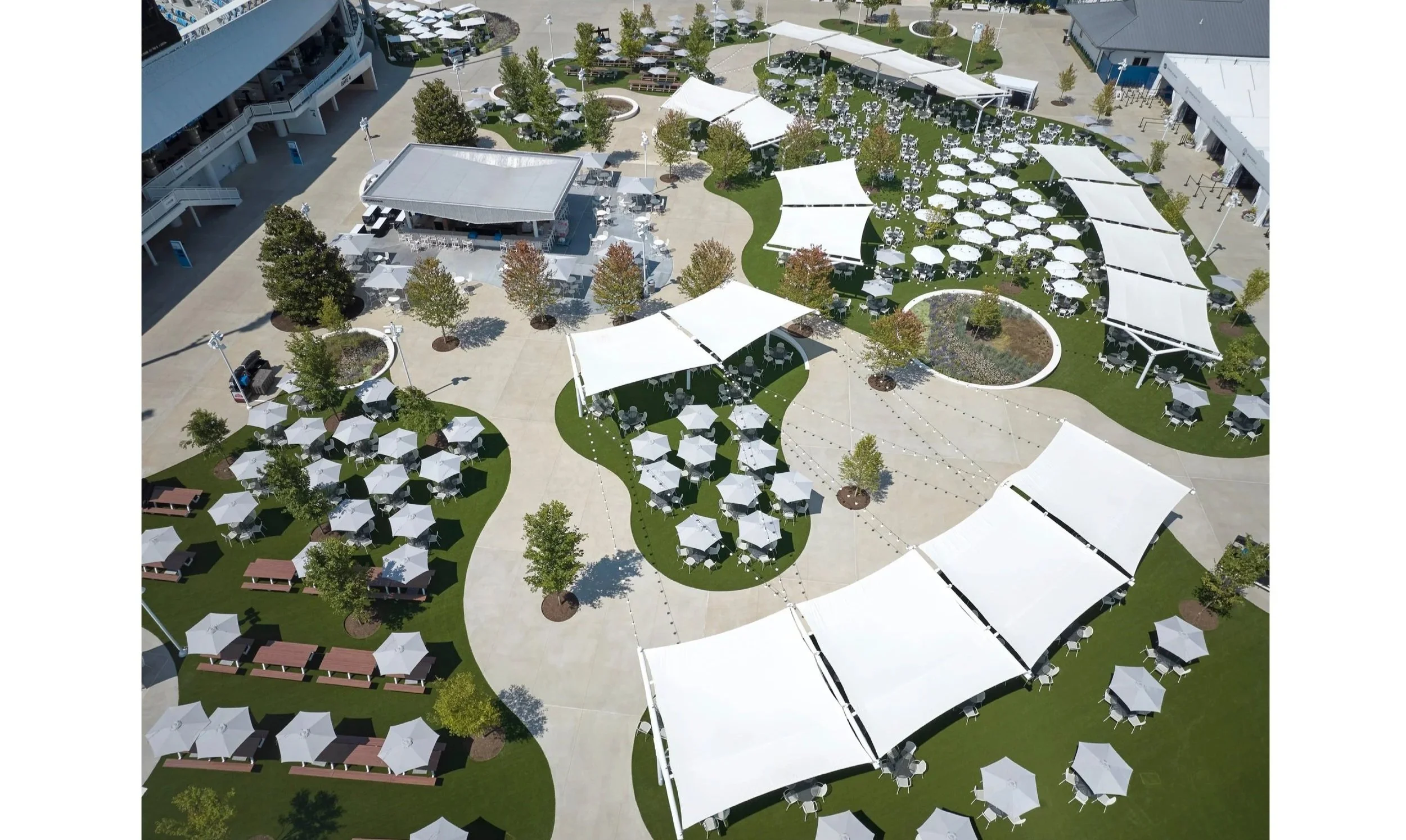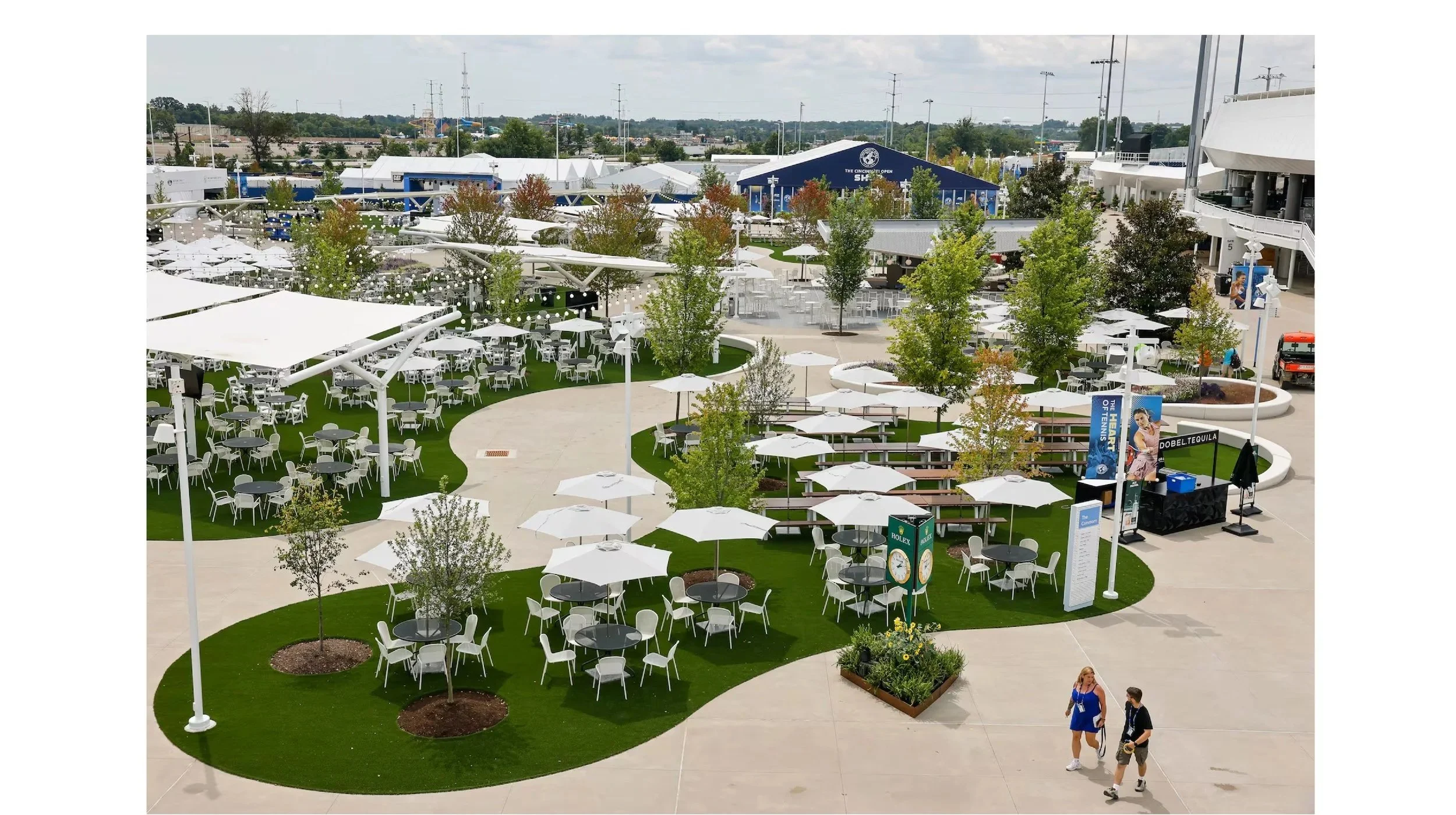 As the MKSK team traversed the campus, we observed visitors engaging in relaxation, laughter, dining, and socializing, all while experiencing the pinnacle of tennis excellence in an environment that is welcoming, comfortable, and visually stunning. The redesigned Commons, featuring a savannah-inspired arrangement of trees, shaded canopies, and ample seating, alongside the new north and south gateway entrances and meticulously landscaped planting zones, exemplifies a remarkable transformation. This reimagining and recalibration of the Cincinnati Open campus has surpassed all expectations. It is gratifying when a vision and strategic plan come to fruition, and the Cincinnati Open now sets a new benchmark for exceptional fan and player experiences, blending world-class sport with an inviting atmosphere that elevates the entire event.