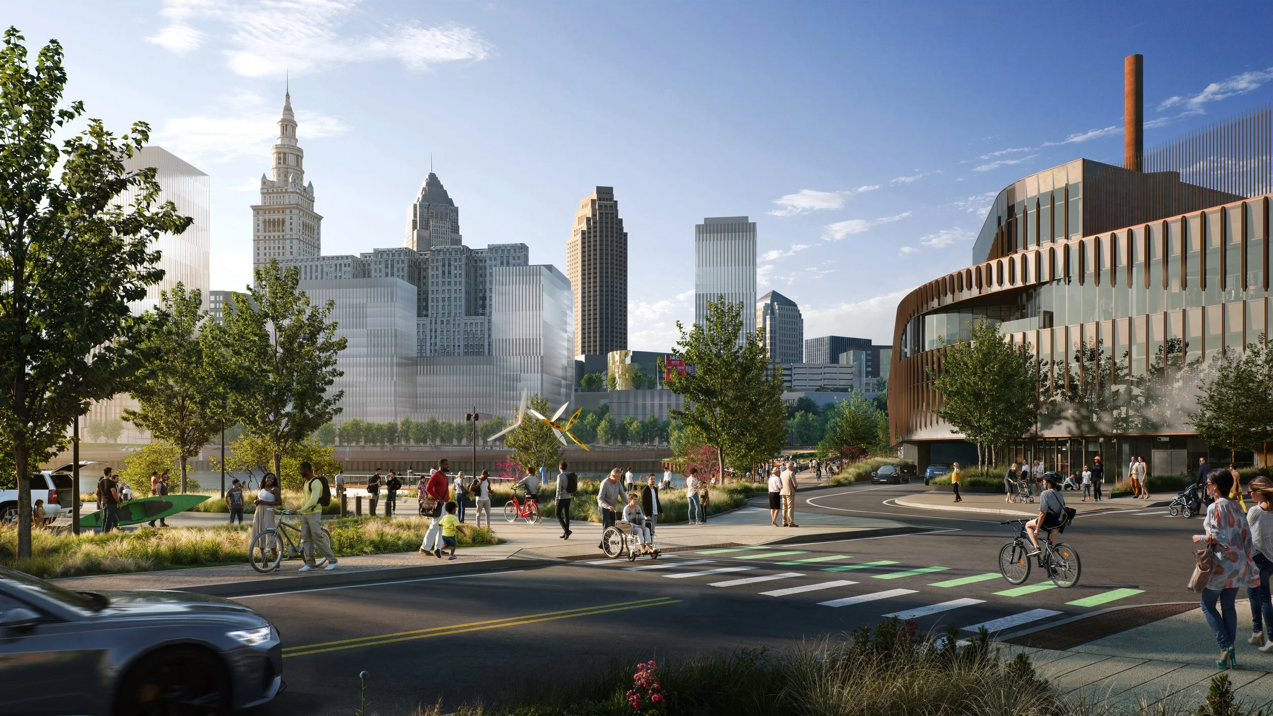 The Cuyahoga Riverfront Master Plan identifies the riverfront land as an asset that can connect communities, create vibrant public spaces, and overall, improve the environment. The Cleveland Clinic Global Peak Performance Center and surrounding public realm will embrace these principles and serve as a catalyst to foster connectivity and growth.