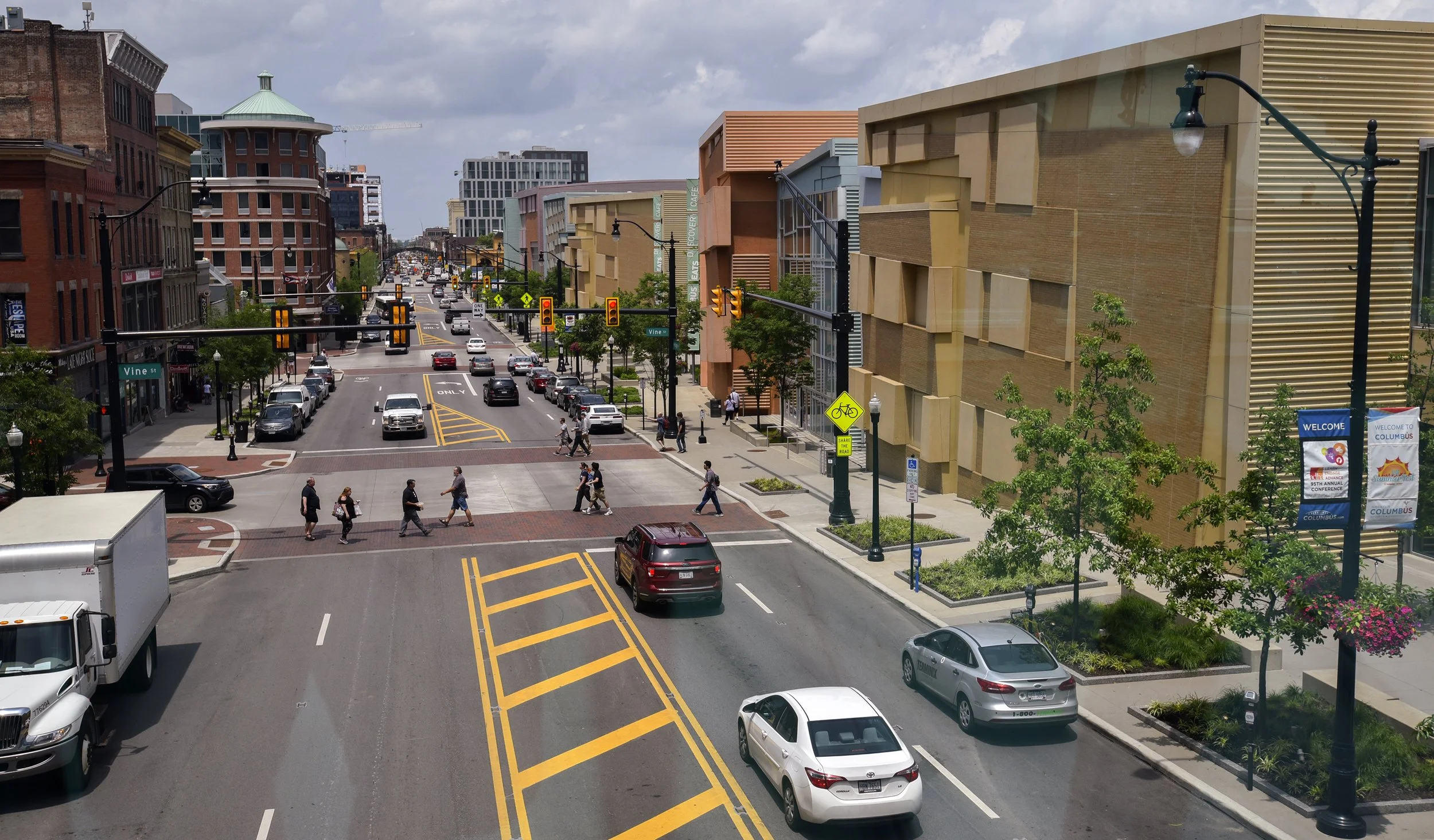 The Short North Streetscape Improvements project included recommendations for streetscape and roadway improvements within the dense commercial/residential corridor of downtown Columbus. Overarching project goals included an increased and enhanced pedestrian environment to accommodate daily “foot traffic” and monthly Gallery Hop traffic, as well as opportunities for outdoor dining.